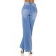 Blugi dama evazati, bleu cu fluturi, din bumbac, cu talia inalta, Andreina