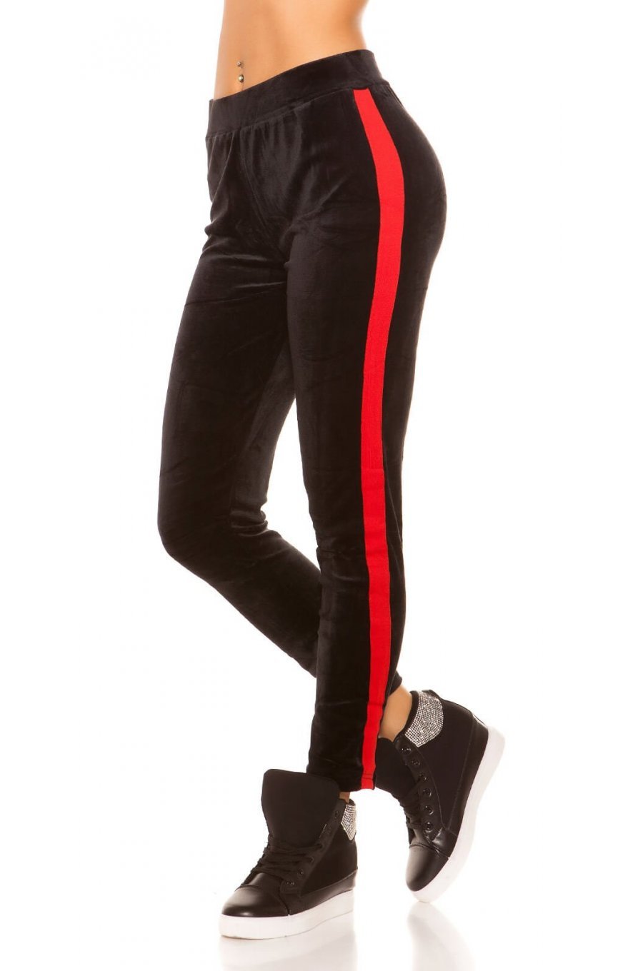 Pantaloni de trening dama, catifea, negri cu dunga rosie Bellyna