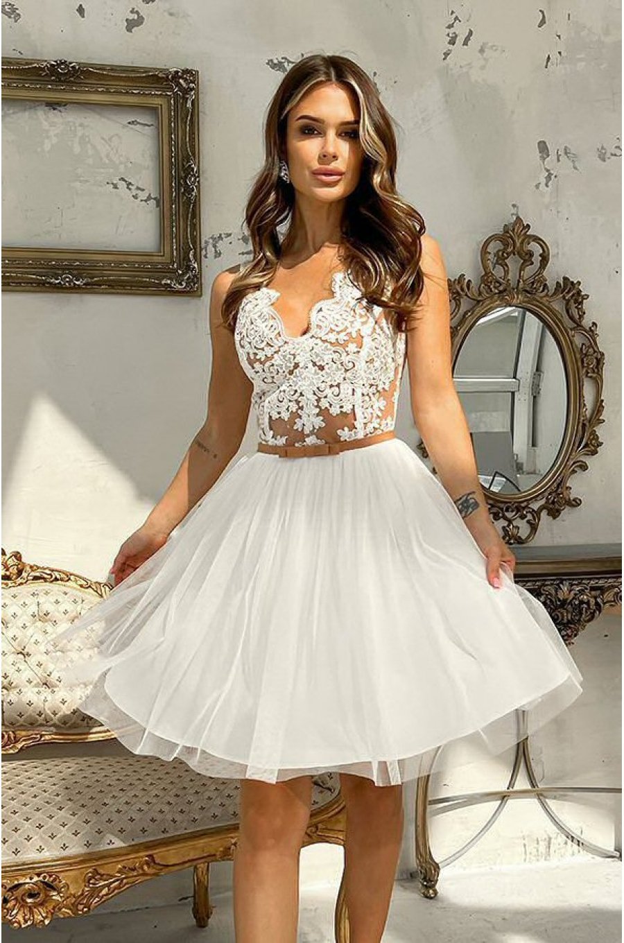 Rochie cununie civila scurta, cu tul si broderie, ecru, Ecaterina - Descriere si specificatii