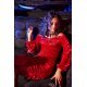 Rochie scurta rosie mulata din catifea cu maneca lunga drapata Zehra