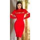 Rochie midi rosie mulata cu maneca lunga Aliye