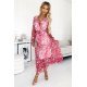 Rochie lunga, din vascoza, roz, cu volane si maneca lunga, petrecuta, Devany - Descriere si specificatii
