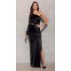 Rochie lunga neagra din satin mulata cu un umar gol EdithR